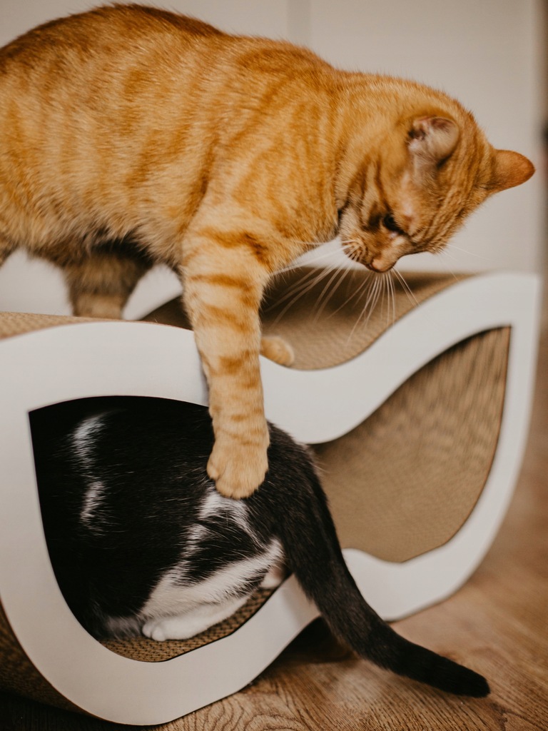 Większe drapaki pakujemy w pudła, które nie lądują w ? tylko są domkami dla kotów. Wiadomo wszystkie koty uwielbiają ?a my działamy w duch zero waste ?.